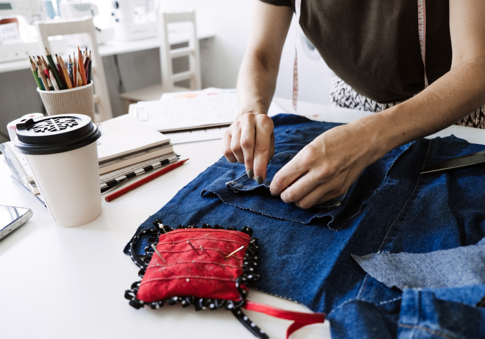 3. Mending torn clothing instead of discarding the fabric.
