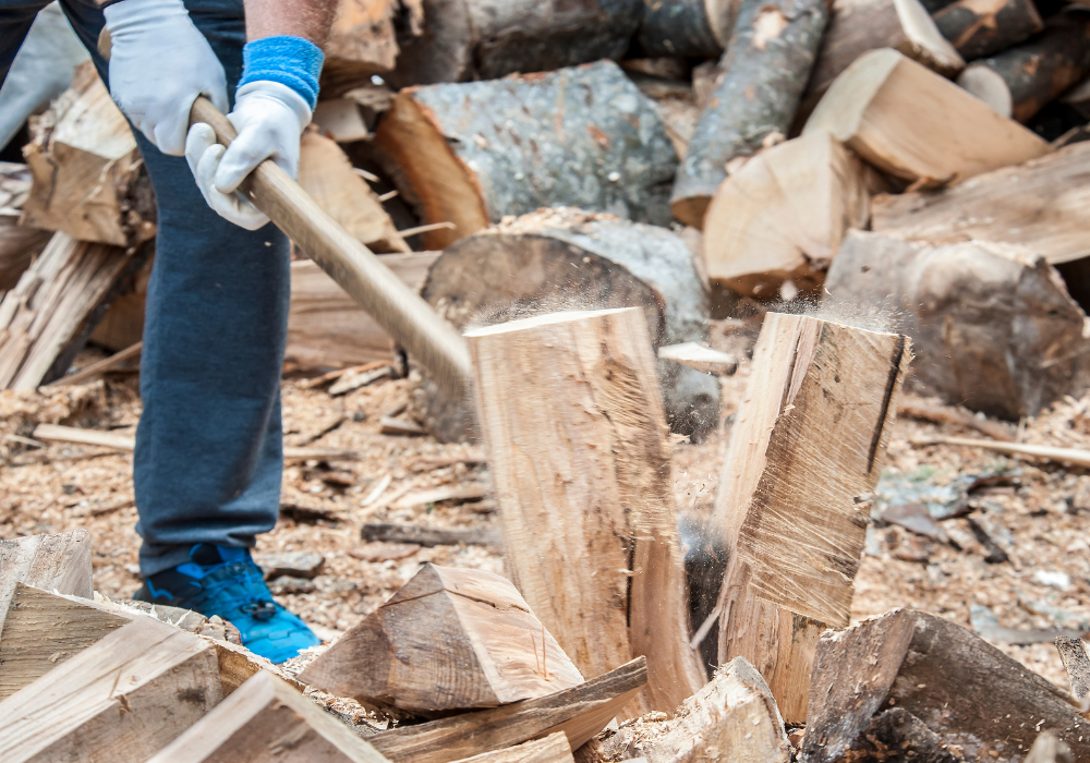 6. Collecting and chopping firewood as a primary heat source.