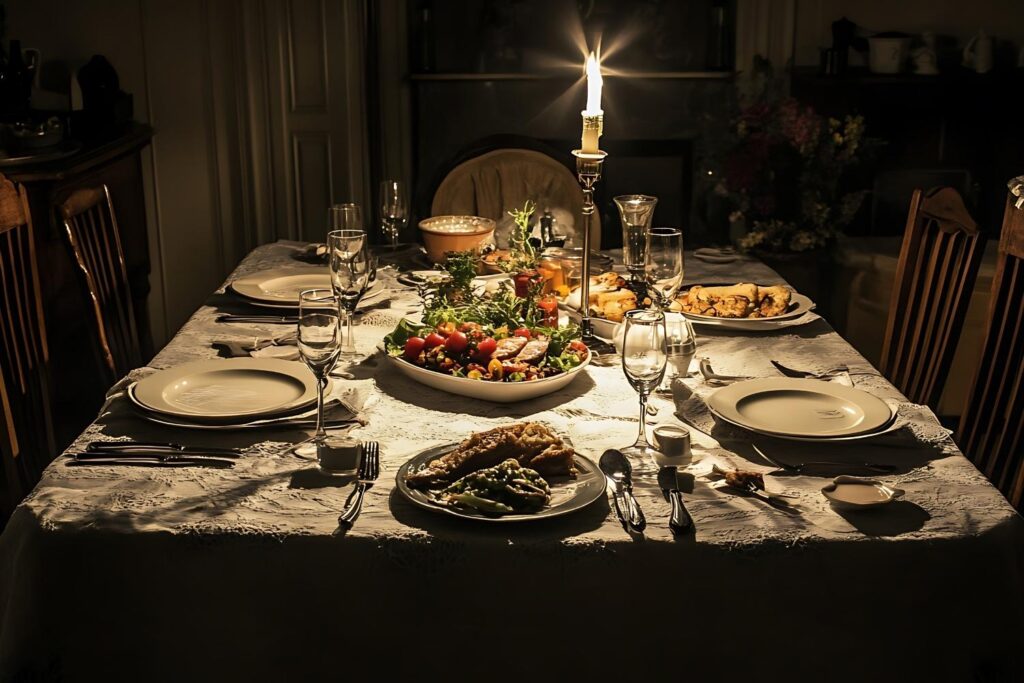 A full table with layered linens and six utensils per guest once marked effort and respect. China patterns, often inherited, carried stories as much as soup.
