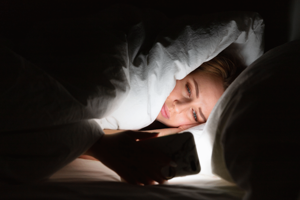 Screens emit blue light, which tricks the brain into thinking it’s daytime, thus interfering with melatonin production, a hormone crucial for sleep. By extending artificial daylight effect, blue light exposure disrupts natural sleep patterns and delays sleep onset.